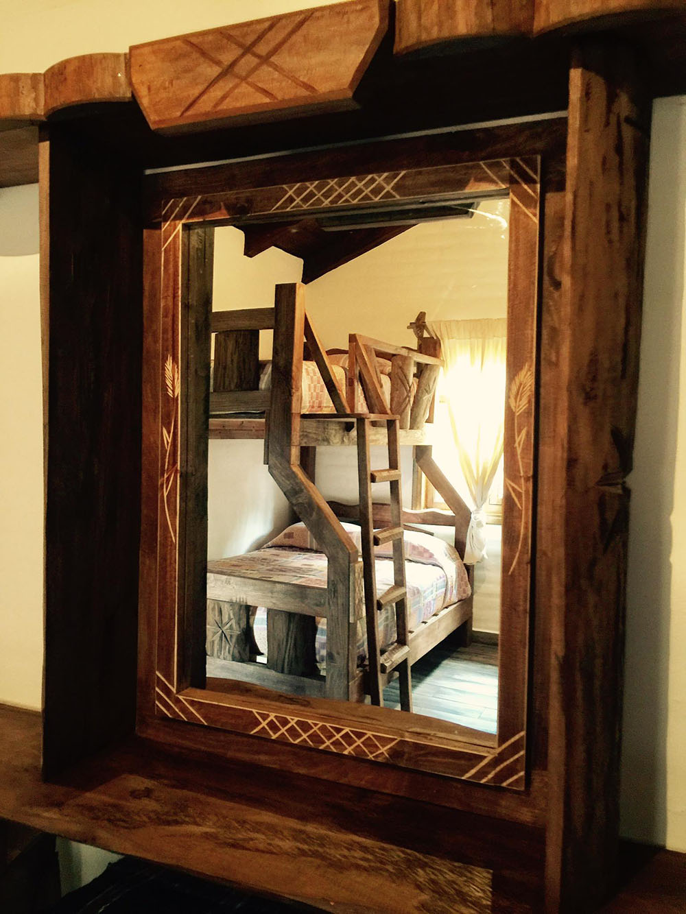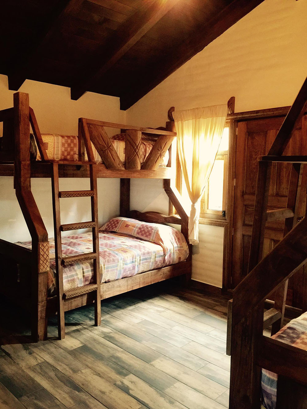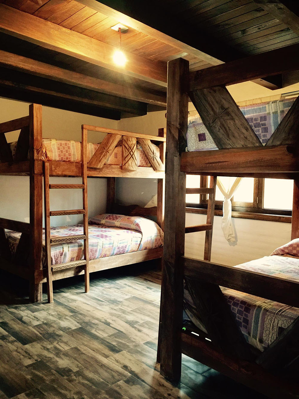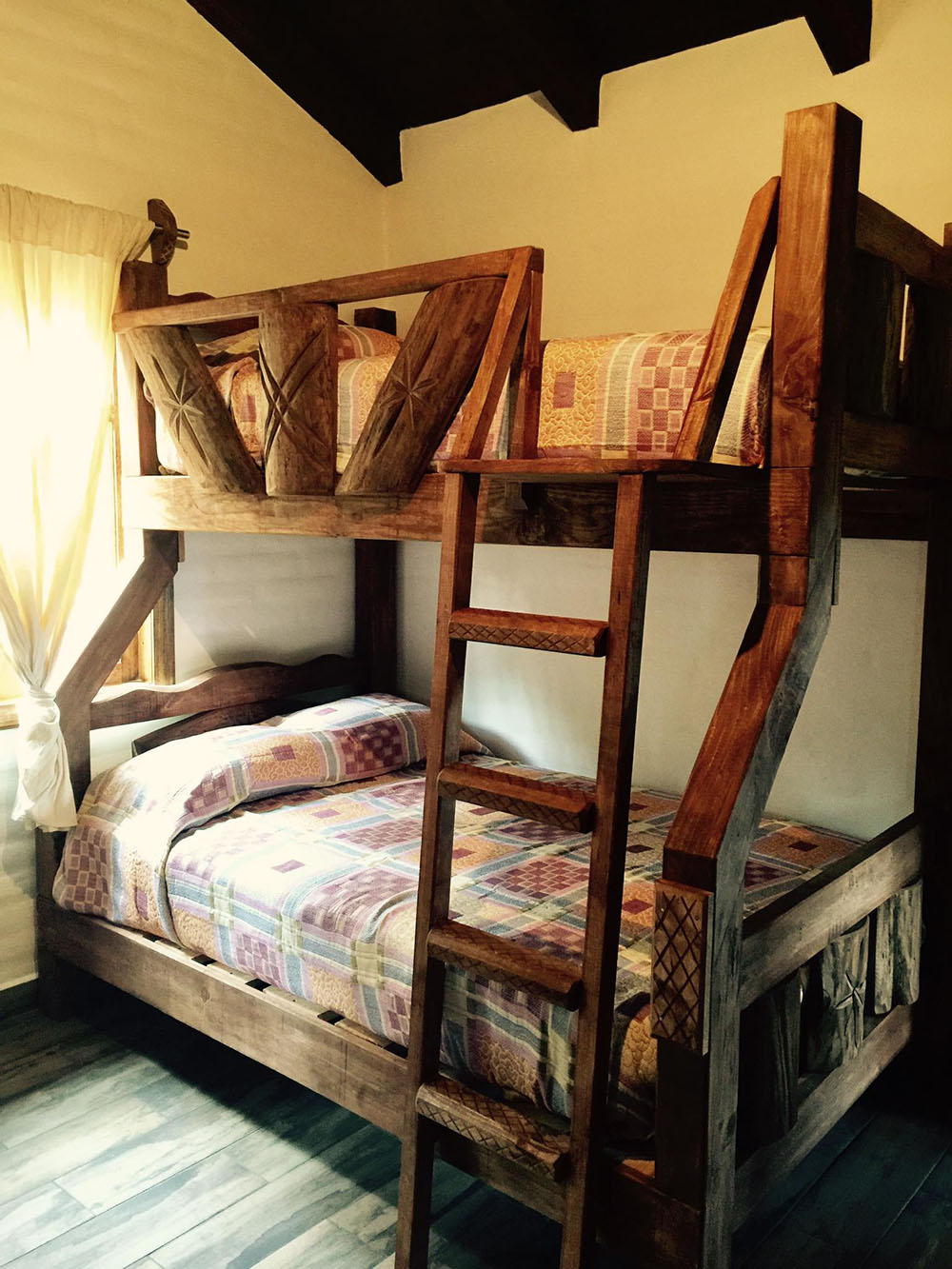Habitación: 2 literas individuales en la parte de arriba y matrimonial en la parte de abajo. Acceso a Balcón con vista al bosque.