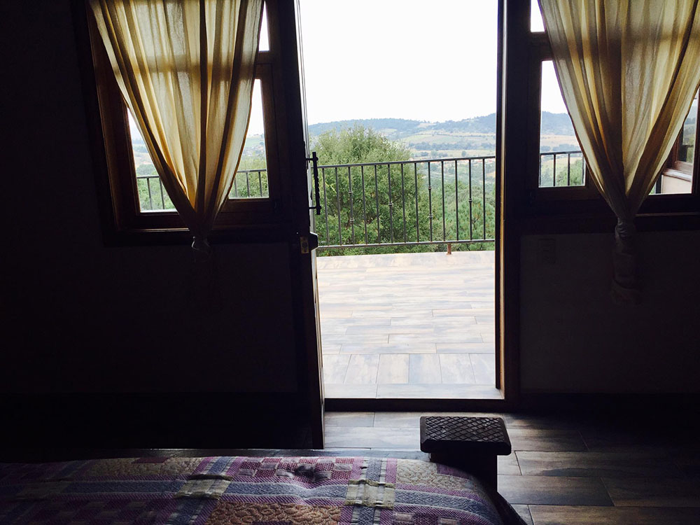 Habitación: 2 camas matrimoniales. Acceso a Balcón con vista al bosque.