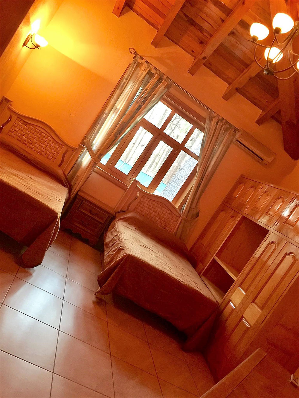 - Una Suite Privada con Chimenea, con su propia cocina y su baño completo con Jacuzzi vista al bosque. Todo de madera muy Romántico para parejas