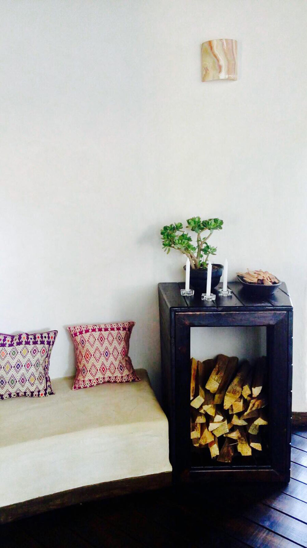 - Chimenea con una carga de leña.